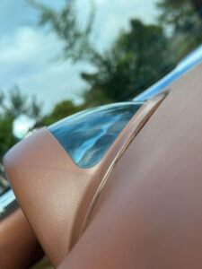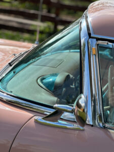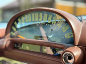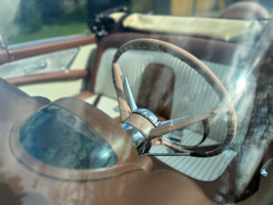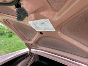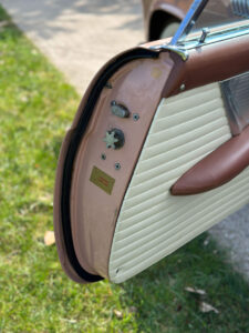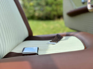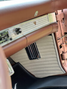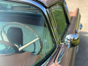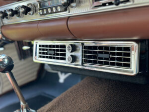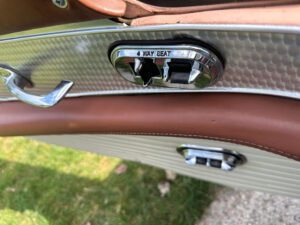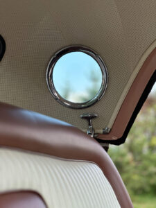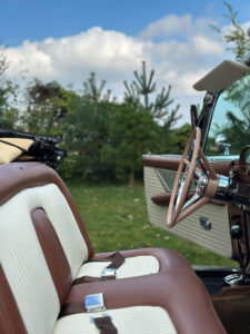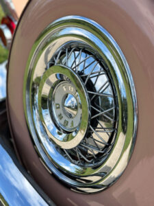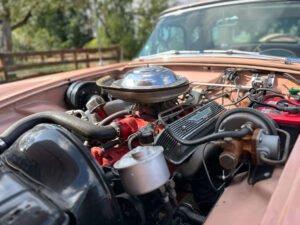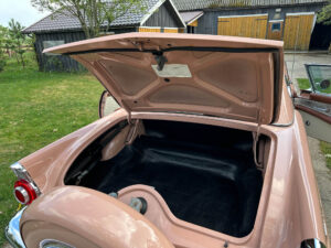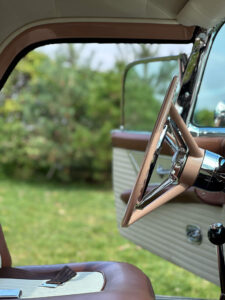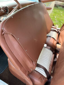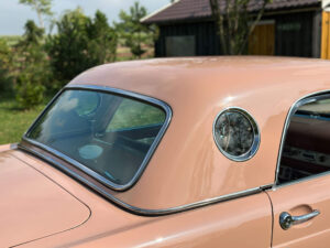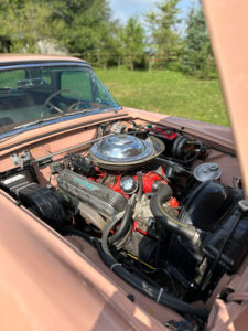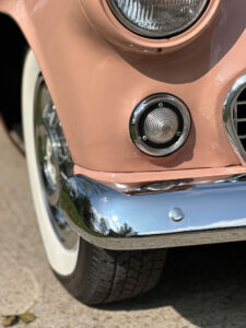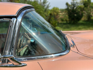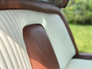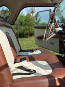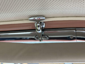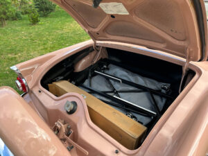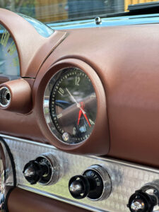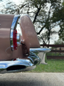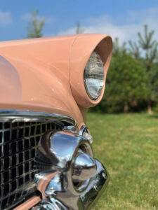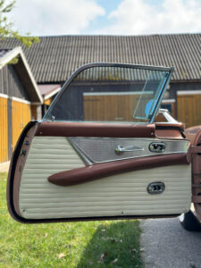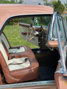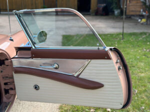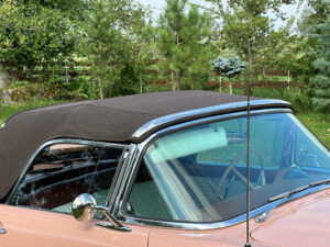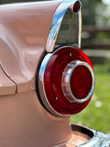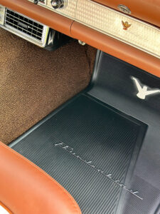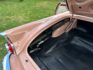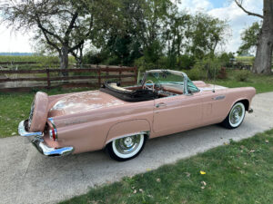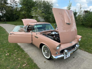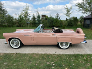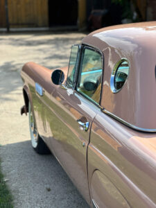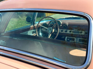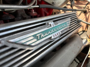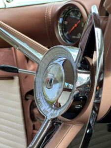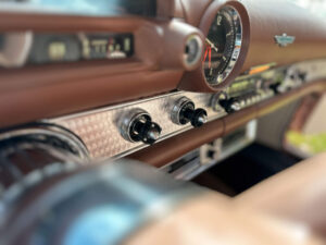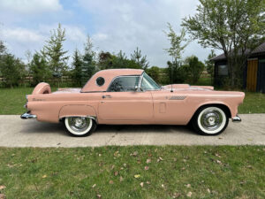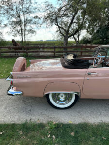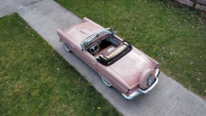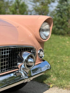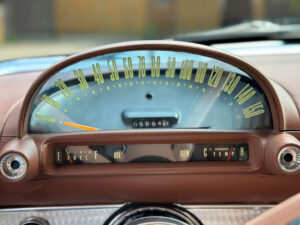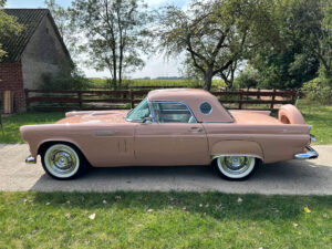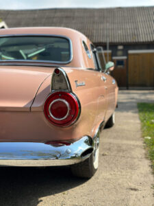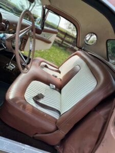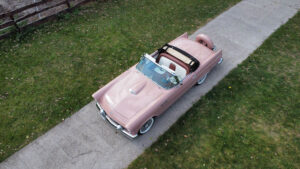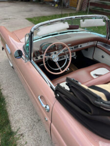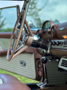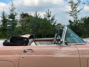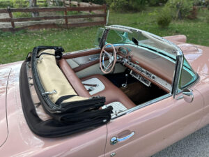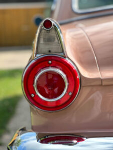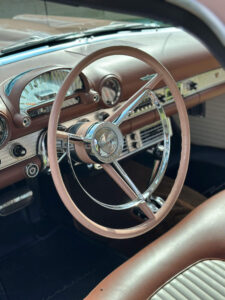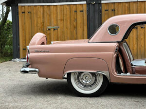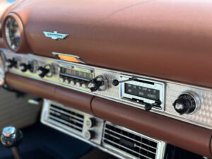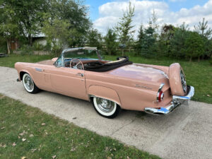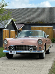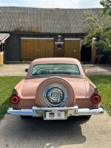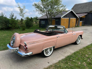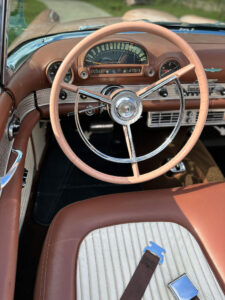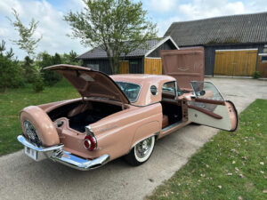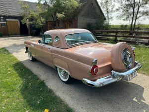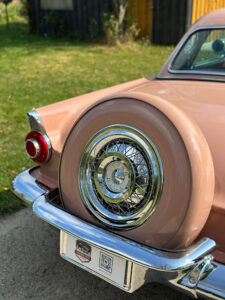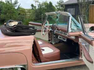 Nasz egzemplarz to tak zwany matching numbers – po rozkodowaniu VIN jest zgodny ze swoją fabryczną specyfikacją. Ford wyposażony jest w absolutnie wszystko co w 1956 roku było dostępne dla tego modelu. Największy silnik 312cui połączony z automatyczną skrzynią biegów, elektrycznie sterowane szyby, elektrycznie sterowana kanapa (!) Continental kit (między innymi pochylane koło zapasowe oraz tłumiki wychodzące na boki wewnątrz tylnego zderzaka), radio, wszystkie szyby błękitne fabrycznie a do tego dodatkowe pasy bezpieczeństwa. Jakby tego było mało ford posiada dwa dachy, miękki chowany bezpośrednio za kanapą (materiał w idealnym stanie) oraz twardy w okrągłymi oknami charakterystycznymi dla tego roku i modelu (także w pięknej kondycji).