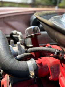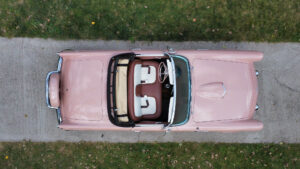 Silnik i skrzynia pracują bardzo dobrze. Miesiąc temu samochód otrzymał od nas płukanie silnika, dwukrotną zmianę oleju, nowe oryginalne świece oraz profesjonalne czyszczenie i regulacje gaźnika. Mruczy przepięknie i jak na 1956 rok jest to wyjątkowo szybkie i zwinne auto. Dosyć powiedzieć, że przy pięknej słonecznej pogodzie można go zupełnie bezproblemowo używać w ruchu drogowym. Radość niesamowita. Gdziekolwiek się pokaże budzi dzikie emocje i pożądanie. Nie bez powodu Elvis Presley miał taki sam model!