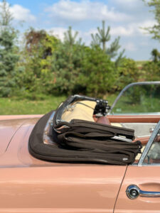 Samochód jest zarejestrowany w Polsce na białe, krótkie tablice i ma ważny przegląd oraz ubezpieczanie. Do samochodu jest pełna historia odbudowy od Amosa z ogromną ilością faktur, rachunków oraz dużo jego oryginalnej literatury z 1956 roku. Dwa komplety kluczyków. Składany stojak na twardy dach wraz z pokrowcem są w komplecie z samochodem i mieszczą się bezproblemowo w bagażniku. Nasz Ford to uczestnik Retro Motor Show 2024.