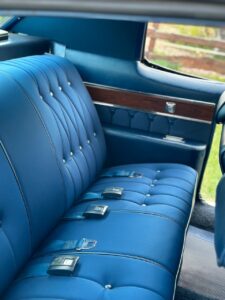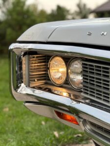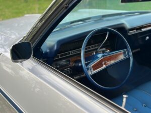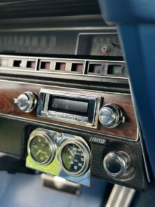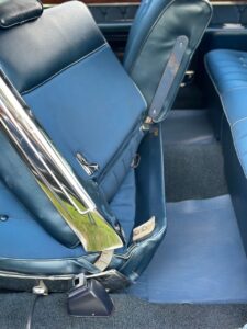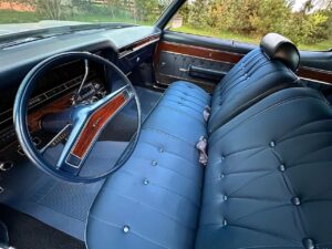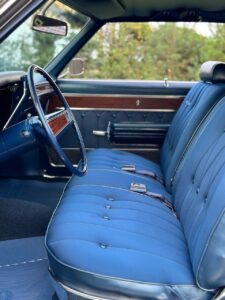 Wnętrze tego egzemplarza jest niczym kapsuła czasu – oryginalna tapicerka, deska rozdzielcza i detale z epoki oddają ducha końca lat 60. Przestronność kabiny sprawia, że zarówno kierowca, jak i pasażerowie mogą cieszyć się pełnym komfortem podczas każdej trasy. Elektrycznie sterowane szyby, wygodne fotele i klasyczne radio to tylko niektóre z elementów wyposażenia, które podkreślają prestiż tego modelu.