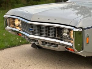 Prezentowany Chevrolet Caprice to wyjątkowy przykład klasycznego amerykańskiego cruisera. Jego idealnie zachowana sylwetka i klasyczna kolorystyka sprawiają, że wygląda jakby dopiero co opuścił salon w 1969 roku. Nadwozie zachowało swoje oryginalne proporcje i charakterystyczne detale, a chromowane elementy wciąż błyszczą jak za dawnych lat.