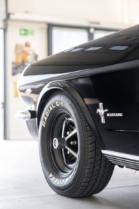 Wnętrze wyposażone w rally pack (obrotomierz i zegar na kierownicy). Zawieszenie zostało delikatnie obniżone, mustang ma koła magnum 500 z nowymi oponami oraz chromowanymi kapslami.