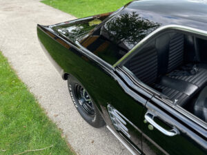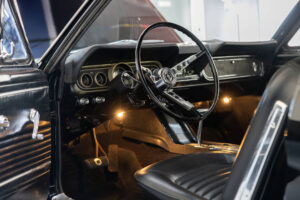 Ten mustang 1966 jest idealnym przykładem. Został profesjonalnie polakierowany z zewnątrz i wygląda dosłownie jak nowy. Cała karoseria nie ma absolutnie grama rdzy a samochód był co kilka lat zabezpieczany pod spodem dynitrolem. Woda nie miała szans zrobić tam najmniejszych zniszczeń. Samochód jeździł co roku cały letni sezon co daje gwarancję, że to jezdne auto a nie żaden projekt, których pełno. Sprawdzona w boju maszyna.