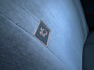 - Czerwone pasy bezpieczeństwa oraz skórzana kierownica