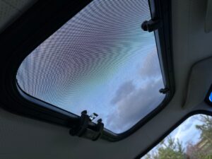 - Wnętrze w kolorze Nimbus Gray wykonane z grubego weluru z czerwonymi przeszyciami i kieszeniami zasuwanymi na zamek