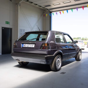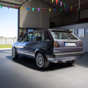Mamy na sprzedaż pięknego Golfa MK2 GTI 16V ze Szwajcarii. Samochód jest w doskonałym stanie, to specjalna wersja z cyfrowym prędkościomierzem. Posiada pięciobiegową skrzynię biegów. Samochód ma drugą warstwę lakieru (lakierowaną w Szwajcarii 20 lat temu – nie znamy przyczyny, ale to dobra robota). Samochód został pomalowany tylko z zewnątrz. Progi, wnęki, komora silnika i bagażnik nadal są w oryginalnym lakierze.